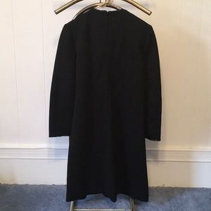 Beautiful vintage Act III brand heavy knit black dress with beaded detail at neckline and sleeves. Zip back, functional beaded buttons, flattering seams. Two minor flaws: 1) left sleeve has a few small threads loose and may be missing a tiny bit of beading at seam 2) need an eye for hook/eye closure. Marked vintage size 12, fits more like a small/4-6. Approx. measurements (flat): 17.5” underarm to underarm, 37” long, 16” at waist, 18.5” hip, sleeve 21.5” from shoulder seam. Belt comes with it.