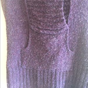 Very cute purple short sleeve sweater from Free People. Has hood and front pouch. One button (would be right above other button by the collar bone) is missing. Very cozy!