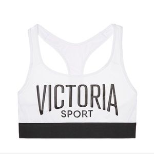 Join Team VS in a medium-support sport bra with a logo band and a comfy racerback in smooth Body-Wick fabric to keep you cool, from cycling to circuit training.