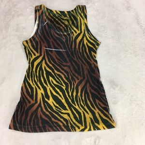 Brown to gold background with black zebra print lines. Tank top by Forever 21. Size Larhe