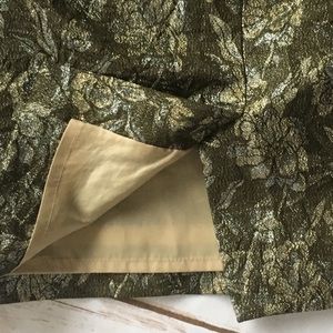 J. Crew • Metallic, Crinkle Fabric, Flower Pencil Skirt - Gold/Green. Lined. Perfect for Holiday/Cocktail Party!