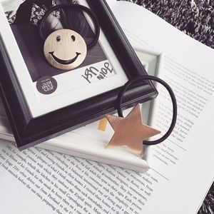 This pretty large solid gold star ponytail holder includes a black stretchy elastic as pictured. Pair with a ponytail, or other updo for a touch of trendy elegance! :)