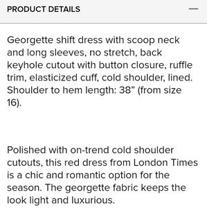 Very beautiful cold shoulder shift dress that sold out at Nordstrom this dress has so much personality let this look make you social media ready dress is 100% polyester comes with extra lining has our Boutique sales tag only these units are brand new