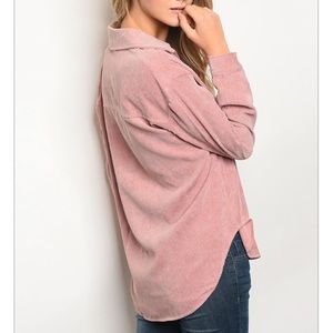 🌴ROSE COLOR LONG SLEEVE TOP FEATURES LACE UP FRONT, COLLAR, TUNIC STYLE. * POLY SMALL MEASUREMENTS B:42" L: 26"🍍