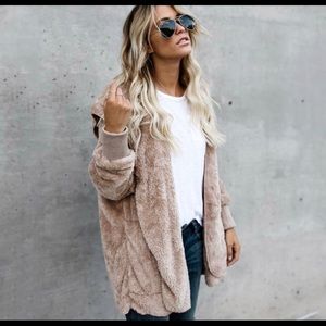 RESTOCKCKED KHAKI, mannequin doesn’t make it look as cute as wearing it😊regular fluffy khaki color -lightweight jacket, drop shoulders for the loose, slouchy look and comfort, open front, Nice deep pockets, Raw hem edges with banded sleeves.