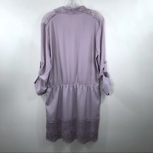 Description: Half button shirt dress with lace details. Sleeves can be worn long or rolled.