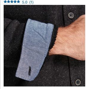 This is a super soft shirt and very warm. It has a Sherpa lining in the body and sleeves, Chambray interior on the trim, and is 100% polyester. Approximate measurements:
