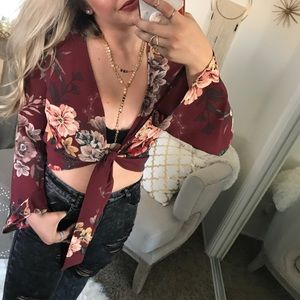 This style is so popular and too die for! Adjustable tie front and breathable fabric that can be worn with a bralette, over a top, dress or all by itself! Perfect color for fall and a perfect statement piece! ✨paired jeans, bralette & shoe available for sale ✨