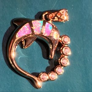 Dolphin has inlaid opal - wave is simulated pink sapphire stones.