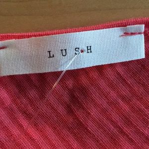 NWOT Lush pink/red comfy criss cross open back top. Very comfy sleep top. Sheer material. 72 rayon 28 polyester. Size XL.