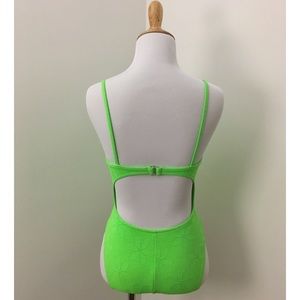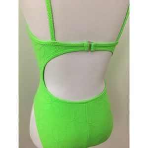 Awesome vintage 80s 1980s 90s 1990s lime green Floral cut out high cut one piece Swimsuit with underwire and padding by Pacific Connections in brand new condition. Tag says size 5 and fits like today's size Small/4