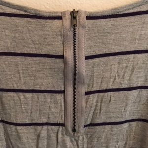 Gray and purple striped shirt blouse from guess by Marciano. Zipper detailing in the back with a drapey flutter sleeve.