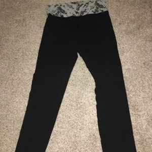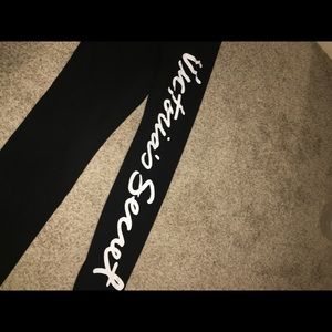 The pants/legging... both are Xl .... other black, one w/Victoria Secret written down leg, has a nice tall waistband can be folded over (as does the other pair) the other pair is solid black except for the waist band which has some gray and black (tie dye? effect)