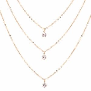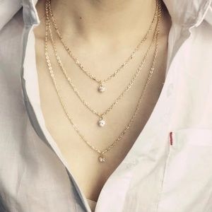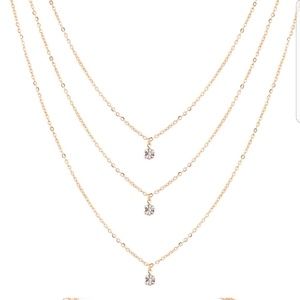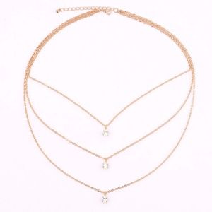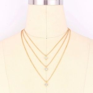 Triple layered clear crystal necklace. All layers are connected to one lobster clasp closure.