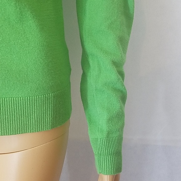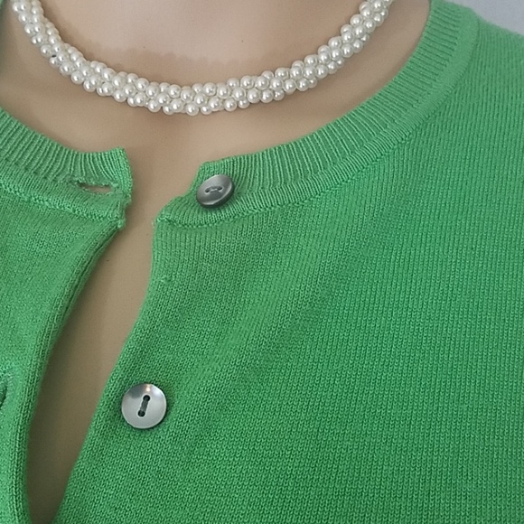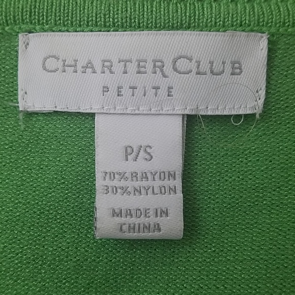 Spring green Charter Club cardigan. Front button closure. The color is a softer green in person. Extra button on side tag. Size P/S