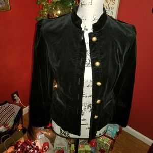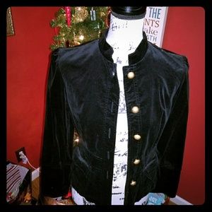 Black Fitted Jacket with Gold Toggle Buttons. Has front pockets perfect for holding lipstick & or lipgloss💄💄Material feels like a soft Corduroy mixed with Suede😍 Mix it up with just about anything,, this is a personal favorite of mine💞 Do note, with this material it tends to attract lent. But on another note it will turn heads👀💕 Great Condition.