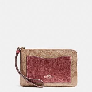 100% Authentic New Coach Boxed corner zip wristlet with metallic colorblock F22713