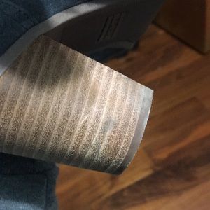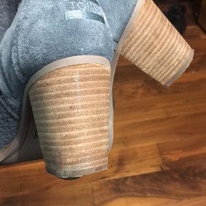 Wore twice. Good condition. Sooooo comfortable. Designed in embossed suede, this peep-toe stands bold on a stacked leather heel. Dark grey embossed suede upper. Leather stacked heel and interior side zipper with braided tassel. Comfort insole with antimicrobial sock liner. Rubber outsole provides a no-slip grip. Heel height: approximately 3".