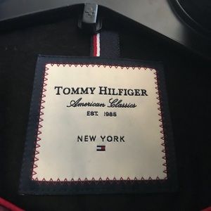 Size Small (4-6) black Tommy Hilfiger winter jacket with detachable faux fur hood. New with tags! Quilted maroon lining. Pockets on outside and detail on sleeves. Hits at mid-thigh. Zip and snap up to keep you extra toasty warm!