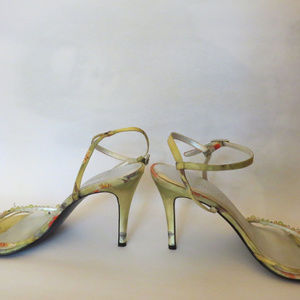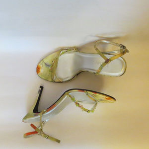 INDEED Ankle Strap Heels Beaded Greens and Oranges