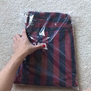 NWT Forever 21 Striped Pants! Super cute and fun fashionable pants! They are in perfect condition and are a pretty dark red and navy blue! Have seen many celebs wearing pants very similar to these like Kendall Jenner, Bella Hadid and Selena Gomez! First picture is a pair just like these worn by Kaia! Size S