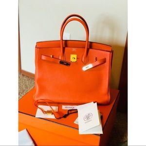 BIRKIN 35 HANDBAG GOLD PLATED D colors 9J / R stamp / Clemence. Personally bought it from HERMES store in Bellevue. Only use one time for couple hours. In excellent condition / no corner wear. Come with full set ( except box ) plus a copy of receipt.
