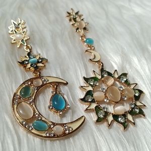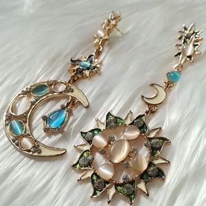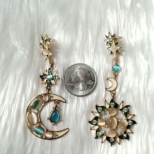 🎈NEW Gold Sun Moon Blue Celestial Dangle Earrings