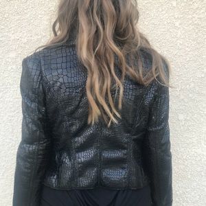Black embossed faux leather jacket with gold zipper . Warm Lining . Runs small . Bundle and save .