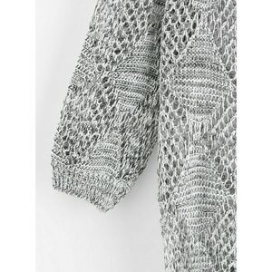 🎀V-neckline Keyhole Back Open Knit Grey and Black Sweaters