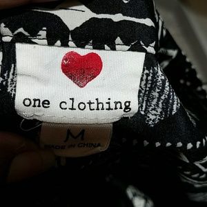 Black shift dress with cap sleeves and tie strings at neck. Black and cream fabric with tribal design accentuates back, upper shoulders, and neckline.