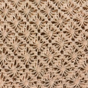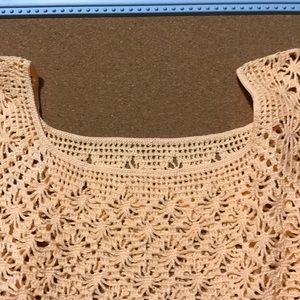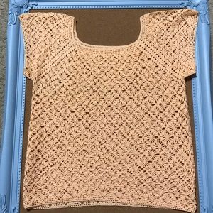 Cute vintage peach crochet top. Dress it up with slacks, skirt, or jeans. Material has some stretch. Recommend wearing a camisole underneath. Love shack fancy vibe.