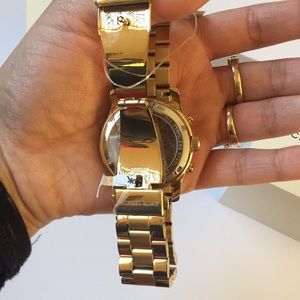 New in box with plastic protection Michael Kors Gold Watch with Rose Pink inside 39 mm gold stainless steel case and gold stainless steel band.