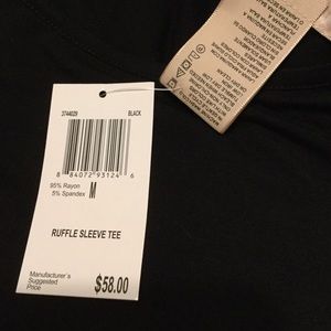 Super cute large, solid black, “Philosophy” ruffled T (retails $58) soft magical fabric of rayon and spandex.