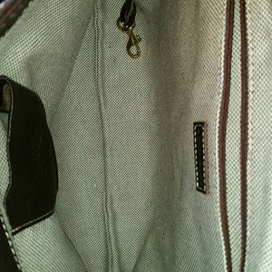 Genuine chocolate brown leather in like new condition. No scratches, tears or markings. Inside has zippered pocket, slip pocket and key keeper. Outside closure is a swivel lock (picture 6). Comes with dust bag. Approximately 14x11x3 1/2 and 10" strap drop.