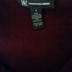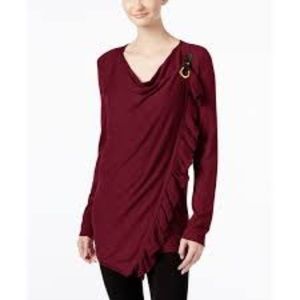 INC Ruffle cardigan in small. Cute faux black leather buckle detail in gold tone, inner snap closure. Generous fit, 20" flat chest, 30" length, and 26" sleeve. Excellent condition, worn once. Beautiful burgundy color.