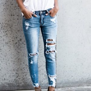 OVER 50 PAIRS SOLD‼️I am in love with the sexy appeal of these skinnies!! A gorgeous skinny jean with distressing throughout. Each pair has its own unique color and fade.From my best selling brand that is Gorgeous on and with stretch! These will not disappoint. Look amazing on! PRICED AT $54