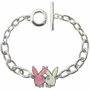 Playboy Bracelet Kissing Bunny Pink Enamel Crystal Toggle Clasp y2k NEW NWT NIB