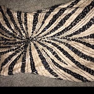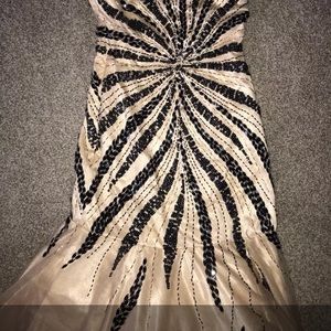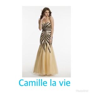 Camille La Vie dress with a strapless sweetheart neckline, a beaded burst pattern bodice worn once a few loose bead comes with dust bag