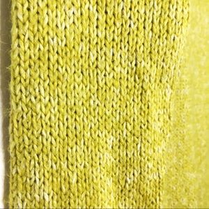 Lime Yellow Green Heather sweater with super cute brown button detail on the shoulder. Though there is no Angora or mohair in the knit, it sure looks like it. So soft and fuzzy. There are minimalist gold sparkle threads in this sweater, but the camera just isn’t catching them.