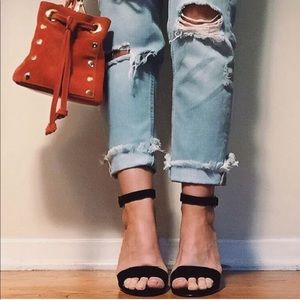 Black Leather Minimalist Ankle Wrap Sandal