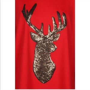 GOLD SEQUIN REINDEER RED LONG SLEEVE TOP