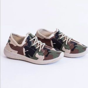Trendy and comfy! These darling tennis shoes will be your everyday go to! With their fun camouflage print and comfortable fit these are perfect for all seasons! The fit is very true to size, so we do recommend ordering your traditional size. Wear with sweats or pair with jeans and blush top for a fresh spring style!