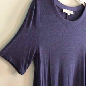 Really cute, casual, t-shirt dress. Lightweight, soft material. Great for summer months or layered with tights and a sweater for the fall!