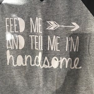 Cute shirt “feed me and tell me I’m handsome”. 24m