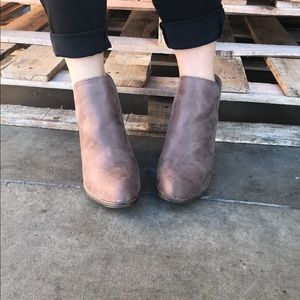 Taupe Side Cutouts Gold Trim Ankle Bootie