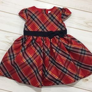 NWT Carter’s formal plaid red and black dress. There is gold metallic throughout the dress is well. Size 6 months. Please note that the price tag has been cut which I showed in a photo.
