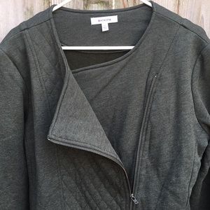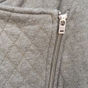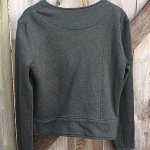 Like new; So much cuter in person! Dark khaki green cotton/polyester; quilted in front; offset zip-front and zippers on sleeves; This is the perfect blend of sweatshirt and jacket! Size XL but I'm listing as a large bc I think it would fit sizes 10/12 best. Smoke-free/pet-free home.