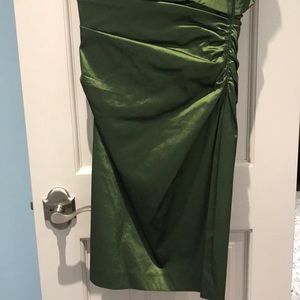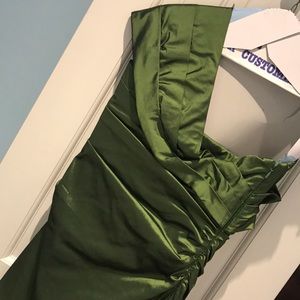 With horizontal pleats to flatter the fitted silhouette and a sophisticated panel to wrap up the one-shoulder neckline, this Kay Unger New York dress makes a convincing case to go green.