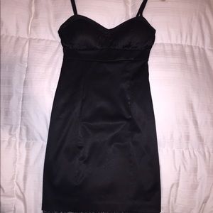 Adorable Guess black mini with lace peaking out at the bottom. Sweetheart neckline with ruched bodice and lace detail. Straps are adjustable. Zip closure in back. Never worn! Size 4.