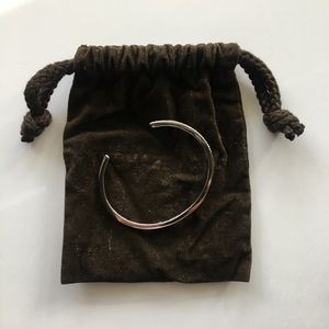 NWOT Micheal Kors silvertone pave thin bar open cuff bangle. Classic and sophisticated slip-on bracelet with clear pave stones throughout. Brand new, never wore. Comes with brown velvet bag.